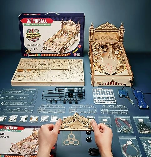 - DIY Experience: This 3d wooden puzzle is definitely a great choice when you find simple puzzles are boring. Composed of 482 puzzle pieces, each piece and accessory has very clear labels, accompanied by detailed instructions and video assembly guides. After building it you can get a classic 3d pinball machine and enjoy it.
