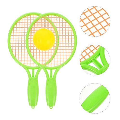 - Kids Tennis Set: Fun for children to learn to play baseball, increase childrens sports hobby. The racket is made of plastic, and the racket is very sturdy, so there is no need to worry about being easily damaged by children. The handle of the racket is wrapped with a sponge to make it more comfortable for children to hold.