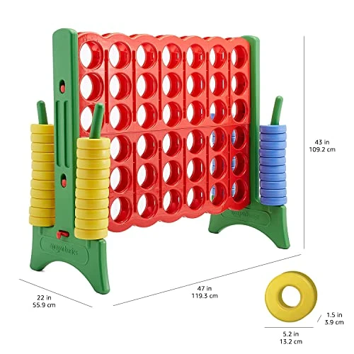 - Easy to use: columns and rows with open slots on top allow for taking turns dropping in rings; handy lever empties the pieces, restarting the game in seconds