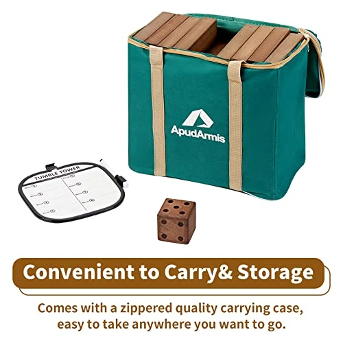 - 【Carrying Bag Included & Easy to Transport】This Wooden Blocks Games Set come with a handy zippered quality carrying case, allowing you to hold all of the Timber Stacking into it. You can take the Vintage Tumble Tower Game Set anywhere, enjoying the quality time with your friends or family. It is also easy to clean up.