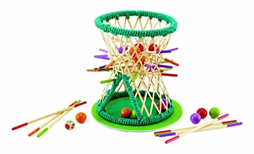 - Contains 1 bamboo basket, 20 bamboo sticks in 4 colors, 16 wooden balls in 4 colors, and 1 purple felt mat