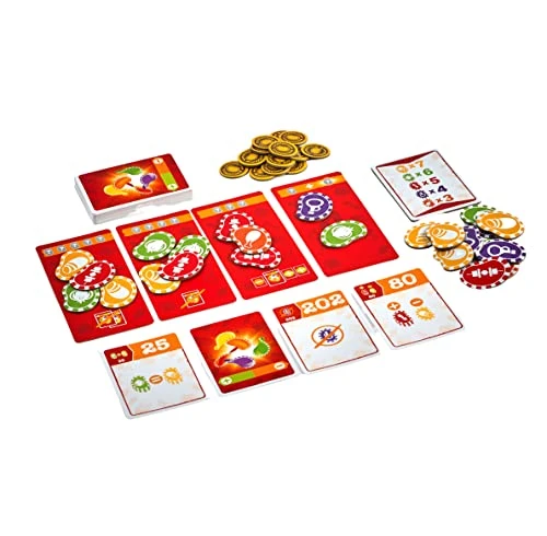 - Included Components: 25 Chips Tokens, 36 Cards, 4 Board Cards, Illustrated Rules, 16 Victory Tokens