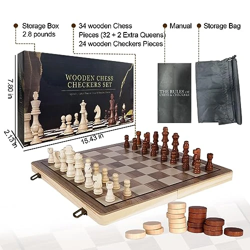 - ♟𝐃𝐮𝐚𝐥 𝐄𝐧𝐣𝐨𝐲𝐦𝐞𝐧𝐭: In addition to standard chess, this set also includes checkers game pieces, offering double the fun and versatility. You can easily switch between the two classic games. As an extra bonus, two additional Queen pieces are provided, adding more strategic possibilities and enhancing the enjoyment of the game.
