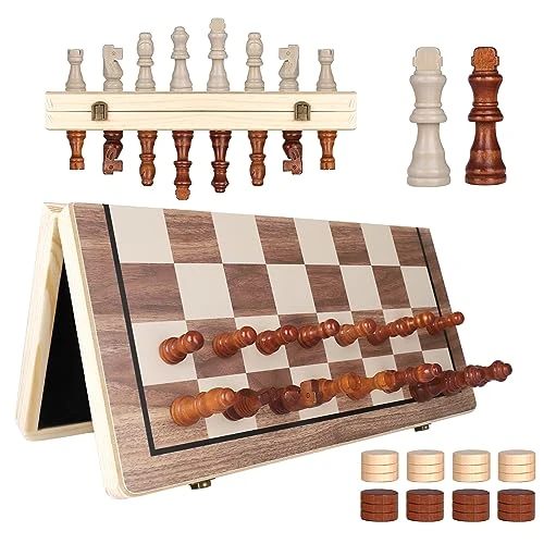- ♟𝐄𝐚𝐬𝐲 𝐓𝐨 𝐒𝐭𝐨𝐫𝐞 𝐀𝐧𝐝 𝐓𝐫𝐚𝐧𝐬𝐩𝐨𝐫𝐭: Crafted with premium quality wood and meticulous craftsmanship, this magnetic chess set provides a comfortable and durable gaming experience. The folding design of the chessboard allows for easy storage and portability, making it convenient to take the game with you wherever you go.
