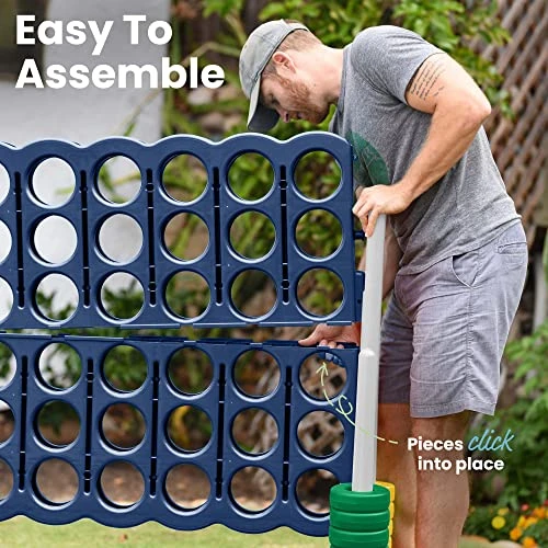 - Easy Assembly: This huge game is made of high-quality, lightweight materials that are easy-to-assemble in just 2 minutes without any tools or hardware to maintain; includes 42 rings in two team colors