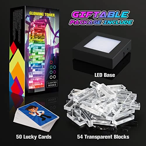 - 🎁 Fun Gift Idea: This games are enjoyable and entertained for all ages,not only great game for family gatherings and bonding,also fun games for parties and social events.The unique light-up and stacking features add extra excitement to games,perfect gift for family game night,parties,indoor outdoor activities,holidays,birthdays and Christmas.