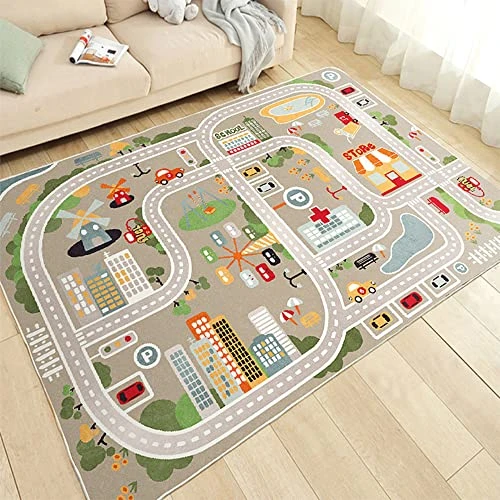 - Vivid cartoon life city design play mat with toy cars, roads, parks, traffic intersections, animals, etc, which draw attention and interests or words.