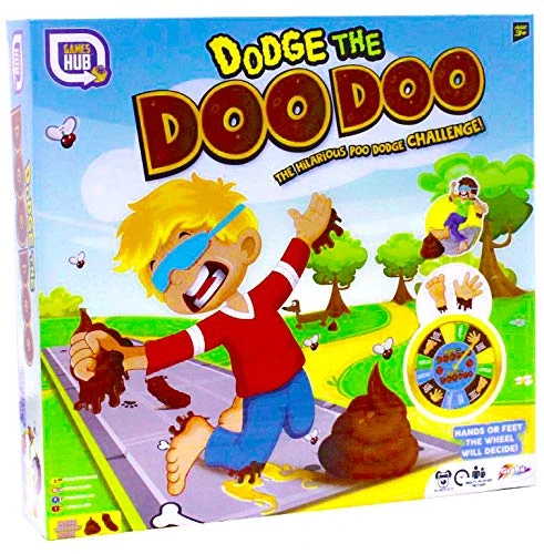 - Box contains: Poo Walk Floor Mat, Game Spin Wheel, 2 Packs of Dough, 1 Blindfold, Poo Mould and Instruction Sheet