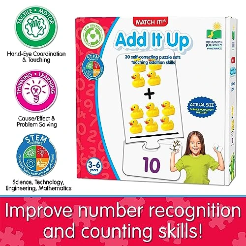 - SUPPORTS DEVELOPMENTAL SKILLS – Improves FINE MOTOR SKILLS and HAND-EYE COORDINATION by requiring your child to fit the correct puzzle pairs together. Help’s develop PROBLEM-SOLVING abilities by encouraging your child to focus and think creatively to determine the correct answers. Self-correcting puzzle pieces build CONFIDENCE and boost SELF-ESTEEM by providing a sense of achievement.