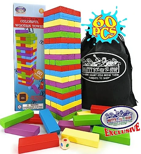 - Matty’s Mix-Up 60 Piece Large Colorful Wooden Deluxe Stacking Game with Storage Bag is the ultimate game for building, balancing, and strategic thinking. Enjoy the challenge, the laughter, and the competitive spirit that this game brings. Perfect for various occasions, from parties to travel adventures, this game is a must-have for all ages. Order now and experience the thrill of Matty’s Mix-Up!