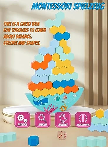 - [Train your child’s balance and motor skills] This stacking game is an ideal educational toy that helps children develop their sense of balance and coordination. By stacking the blocks, they need to strategize and improve their motor skills. They also learn to embrace challenges and overcome difficulties.