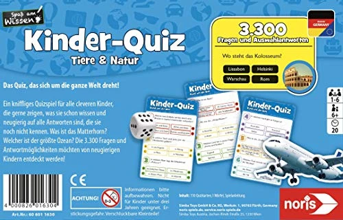 - Box contents: 110 quiz cards printed on both sides with questions and selection answers, 1 dice and detailed game rules
