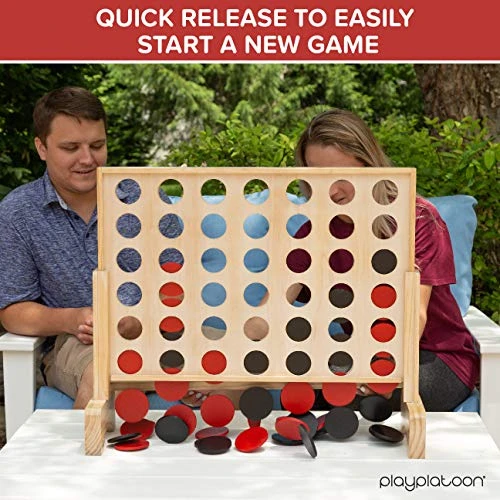 - LIFETIME WARRANTY – Play Platoon stands behind all its outdoor yard games 100%. Giant Drop 4 comes with an automatic 1 year warranty. Register online for a free lifetime warranty. This product is not affiliated with or endorsed by Connect 4.