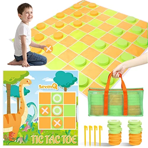 - ⭐️【2 in 1 Floor Game】SevenQ giant game mat has a dual-side&dual purpose, one side of the Mat is a huge checkers board, and the other side is a 3×3 Tic Tac Toe game, providing different game fun. Checkers and Tic Tac Toe are classic puzzle game that is a good choice for family games.