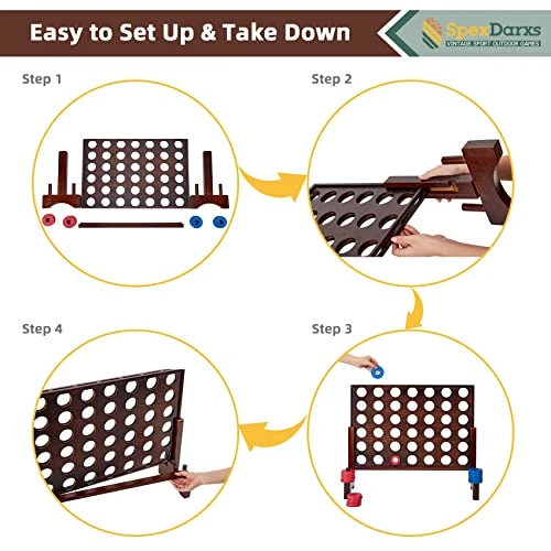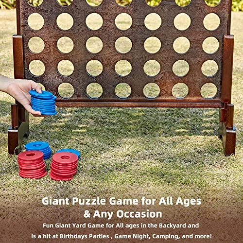 - The four in a row board is very well-made which will not stuck the chips during playing. The 4-to-score giant games measures of 26” tall and 22” width after assembly which is the perfect size for both indoor & outdoor activities