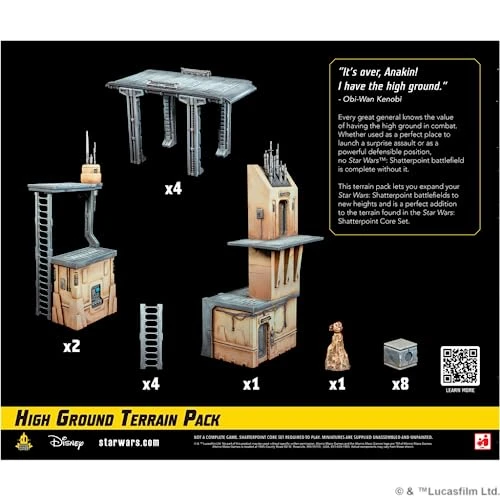 - HIGH GROUND TERRAIN PACK: Players can add even more thematic terrain to their games of Star Wars Shatterpoint with the High Ground Terrain Pack! This expansion complements and expands upon the terrain found in the Shatterpoint Core Set with four gantries and two towers.