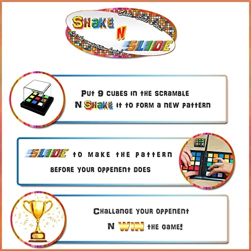 - How to Play: Put 9 cubes in the scramble and shake it to form a new pattern. Observe and try to make the pattern on your game base before your opponent does. You can improvise and come up with new game-plays anytime!