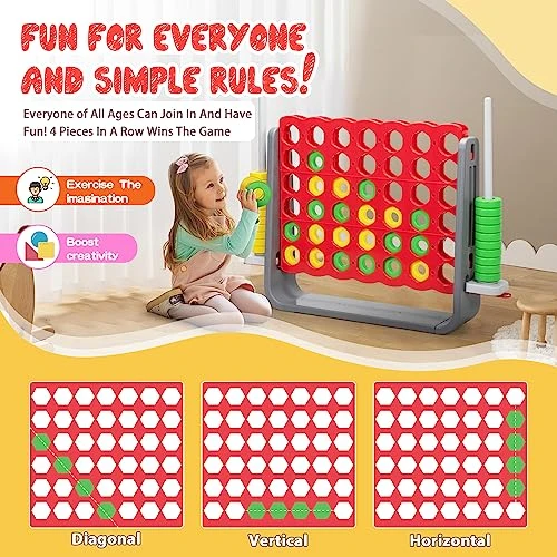 - 【Safe and Convenient Activity Set】: Made of sturdy plastic with smooth edges and a stable bottom, the oversized 4-in-a-row game set is durable for reuse. Just pull out the levers to let the rings all drop out at once when the board is filled up.