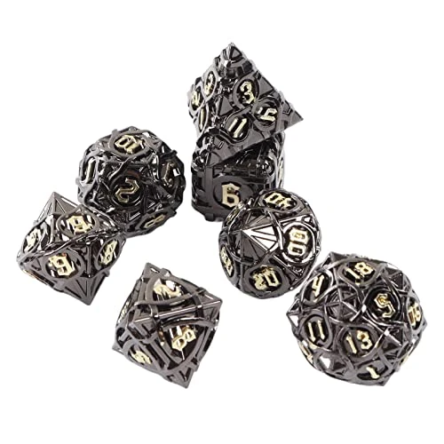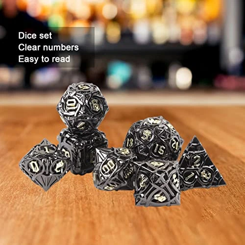 - Quantity: There are 7pcs hollow metal dice set, including D4, D6, D8, D10, D12, D20 and D%. Even if one is lost, the rest can continue to play.