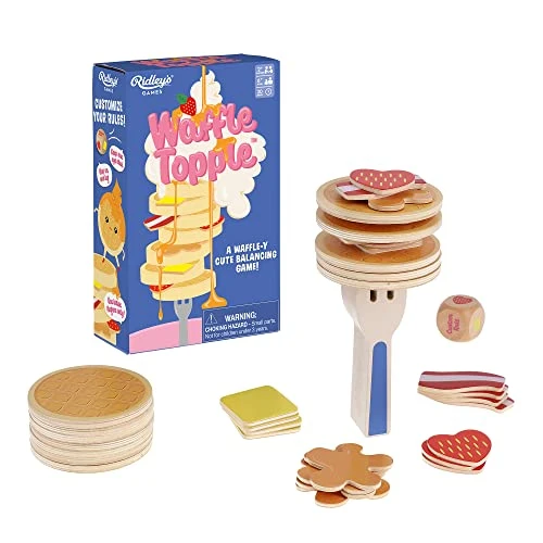 - EASY TO PLAY – Each player takes a turn to roll the die and then attempts to add the shown waffle or topping piece to the stack of waffles.Steady hands are essential, as the more pieces you knock over, the more pieces your opponents add to their piles, and the more points they accumulate.